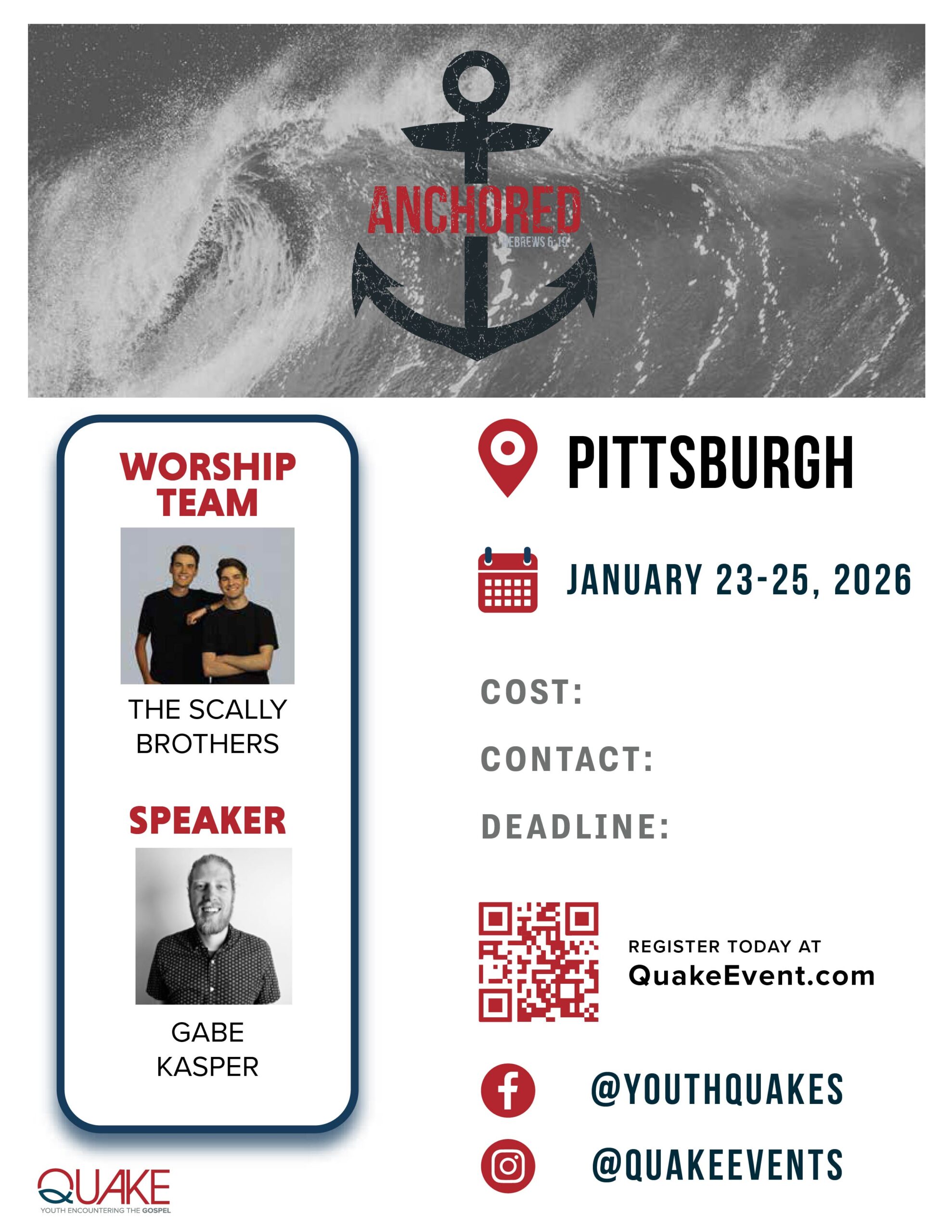Apply for your Quake Scholarship here, there are a limited number of scholarships per event and are awarded on a first come, first serve basis.